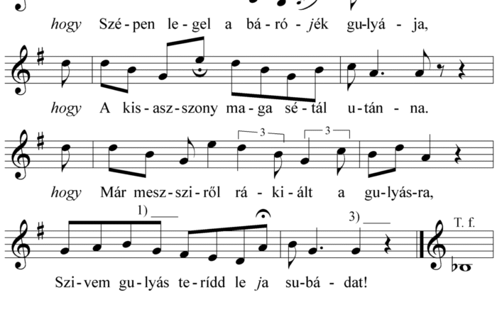 1. hogy Szépen legel a bárójék gulyája, hogy A kisasszony maga sétál utána. hogy Már messziről rákiállt a gulyásra, Szivem gulyás te...