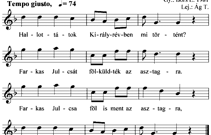 1. Hallottátok Királyrévben mi történt? Farkas Julcsát fölküldték az asztagra. Farkas Julcsa föl is ment az asztagra, Bánatába beleesett a...