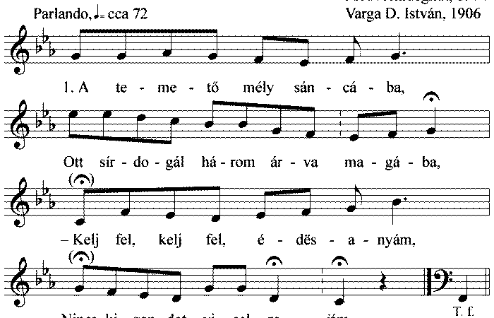 1. A temető mély sáncába, Ott sírdogál három árva magába, – Kelj fel, kelj fel, édësanyám, Nincs ki gondot visel...
