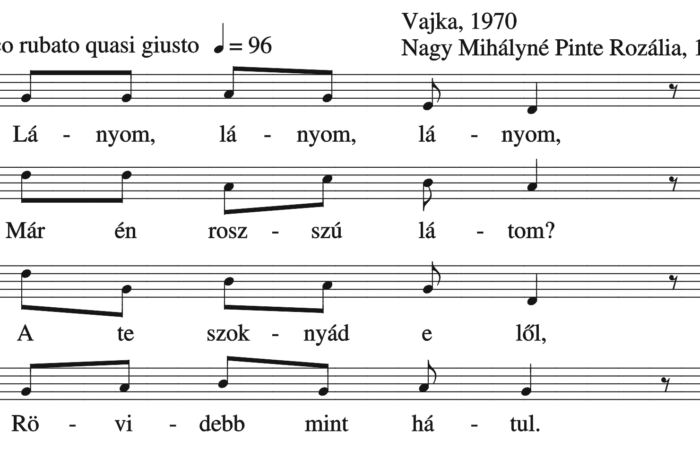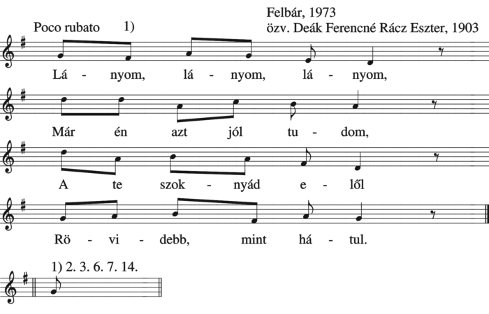 Lányom, lányom, lányom, Már én rosszú látom? A te szoknyád elől, Rövidebb mint hátul. Szabó is jól szabta, Varró is...