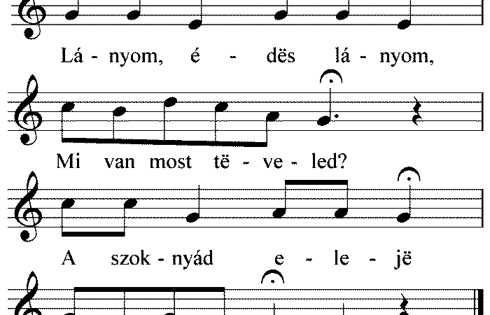 1. – Lányom, édës lányom, Mi van most tëveled? A szoknyád elejë Dë megrövidëdëtt. 2. – Szabó nem jól szabta,...