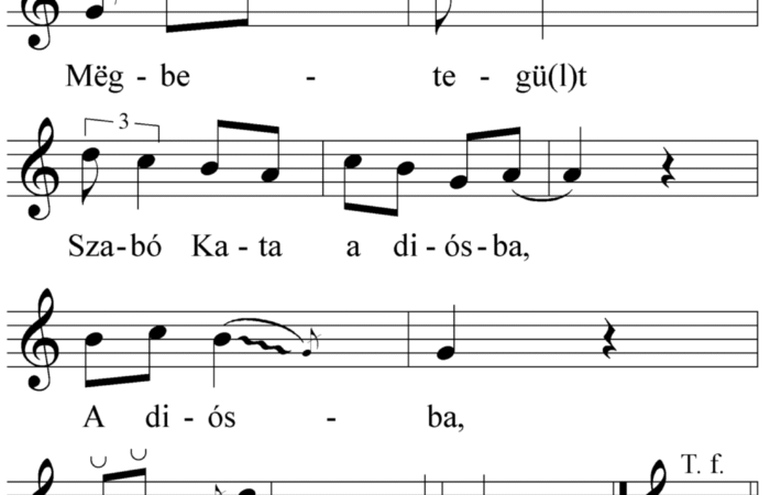 1. Megbetegült Szabó Kata a diósba, A diósba, A diósba, mogyorósba. 2. Kérdgyi tőle Édesanyja, hogy mije fáj? Sëm szivem...