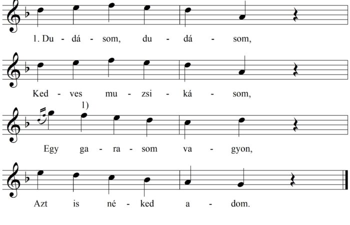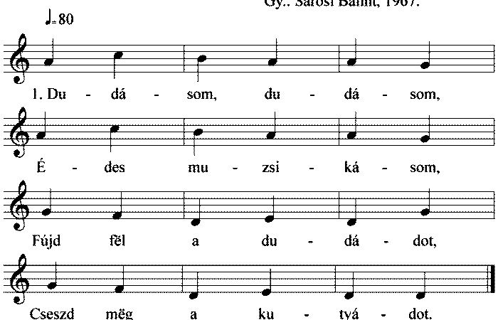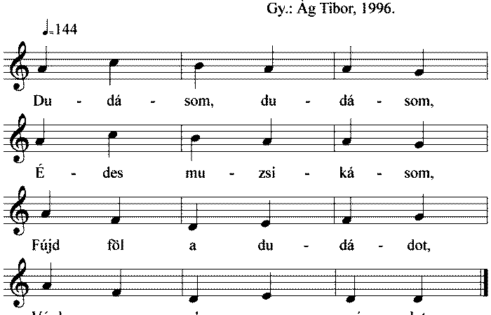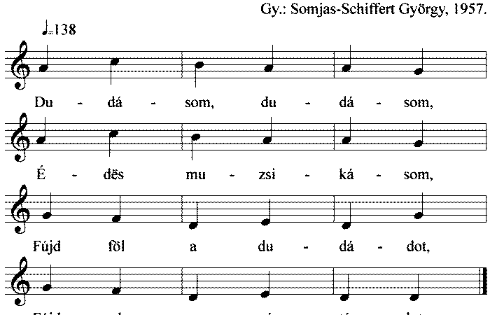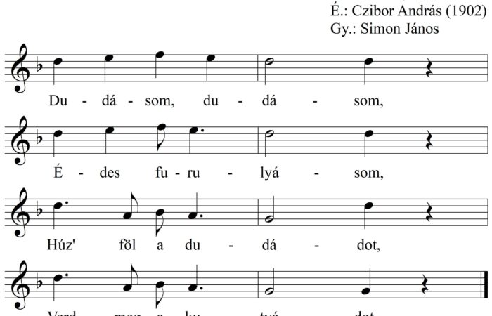 Dudásom, dudásom, Édës muzsikásom, Fújd föl a dudádot, Fújd el a nótádot.