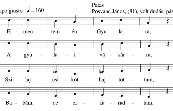 Elmentem én Gyulára, A gyulai vásárra. Szilaj csikót hajtottam, Elfáradt a jobb lábom. Hej, te lábom, hej, te, te, Jobban...