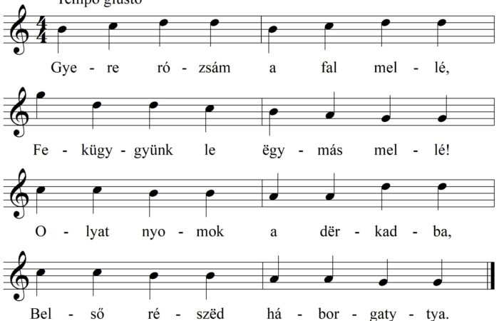 Gyere rózsám a fal mellé (ének, dudanóta, Felnőttek népdalai)