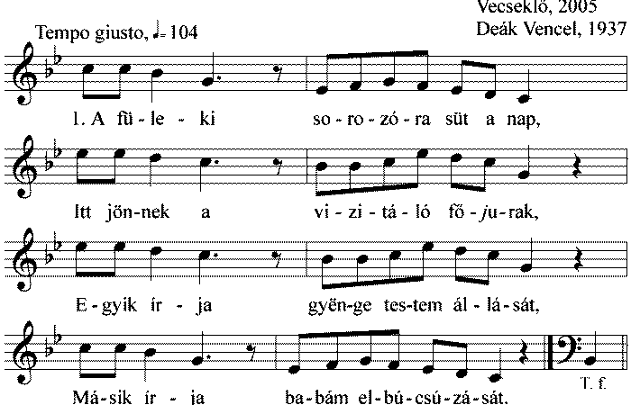 1. A füleki sorozóra süt a nap, Itt jönnek a vizitáló főjrak, Egyik írja gyënge testem állását, Másik írja babám...