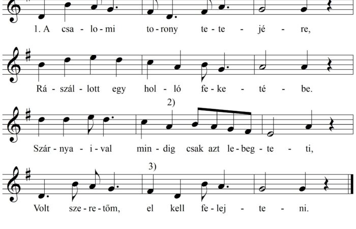 1. A csalomi torony tetejére Rászállott egy holló feketébe. Szárnyaival mindig csak azt lebegteti, Volt szeretőm, el kell felejteni. 2....