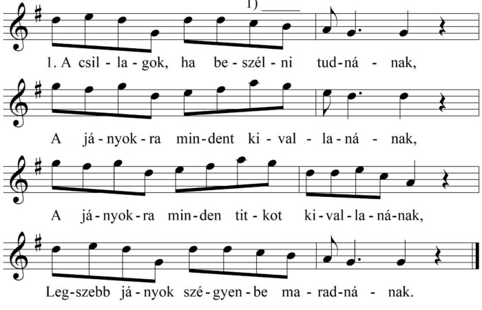 1. A csillagok, ha beszélni tudnának, A jányokra mindent kivallanának, A jányokra minden titkot kivallanának, Legszebb jányok szégyenbe maradnának. 2....