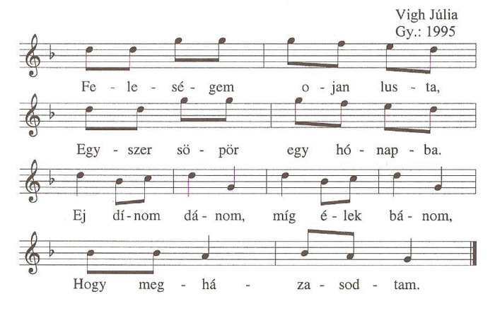 1. Fekete a retök alja, Beteg a szeretőm anyja. A’nná Isten könnyebbségét, Hamarabb a temetését. A’nná Isten hogy meghalna, Hogy...
