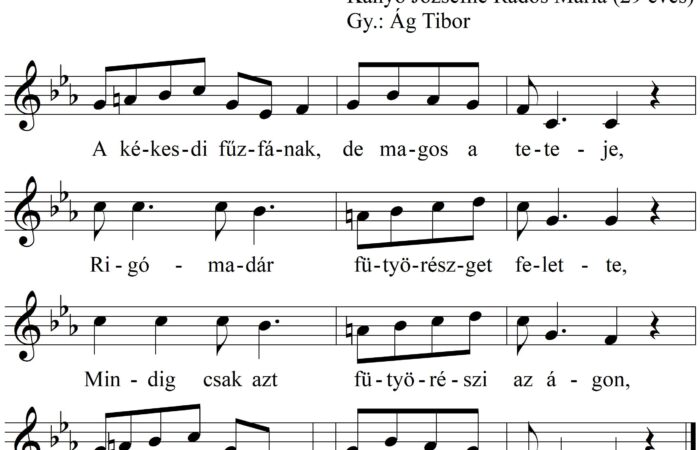 A kékesdi fűzfának de magos a teteje (ének, Felnőttek népdalai, lírai dal)