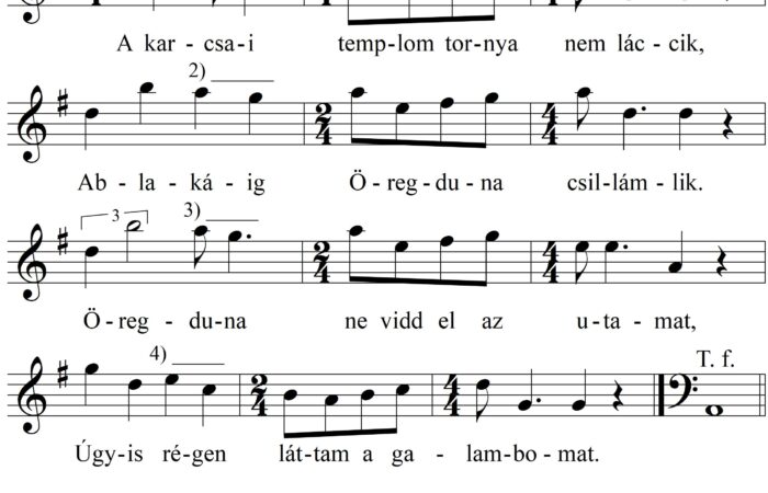 1. A karcsai templom tornya nem láccik, Ablakáig Öregduna csillámlik. Öregduna ne vidd el az utamat, Úgyis régen láttam a...
