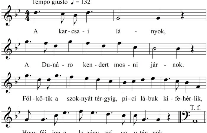 1. A karcsai lányok A Dunáro kendert mosni járnok. Fölkötik a szonyát térgyig, pici lábuk kifehérlik, Hogy fájjon a legény...