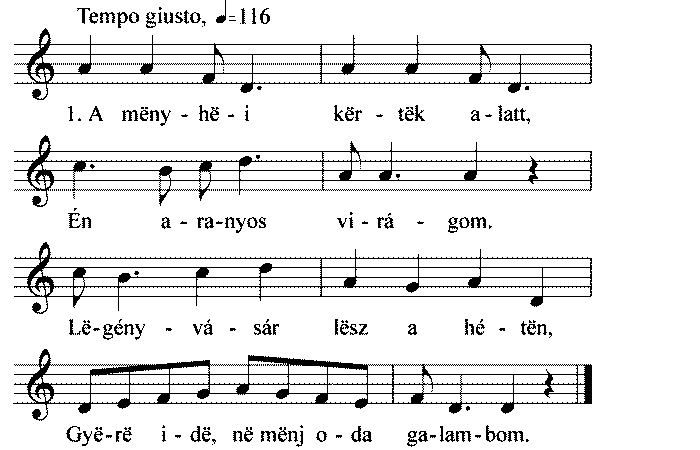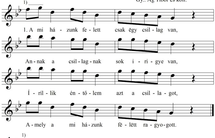 1. A mi házunk felett csak ëgy csillag van, Annak a csillagnak sok irigye van, Írillik éntőlem azt a csillagot, Amely a mi...