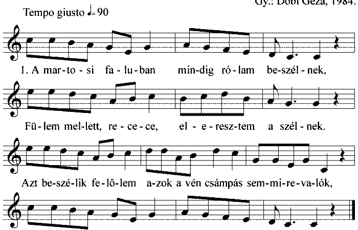 1. A martosi faluban mindig rólam beszélnek, Fülem mellett, recece, eleresztem a szélnek, Azt beszélik felőlem azok a vén csámpás...