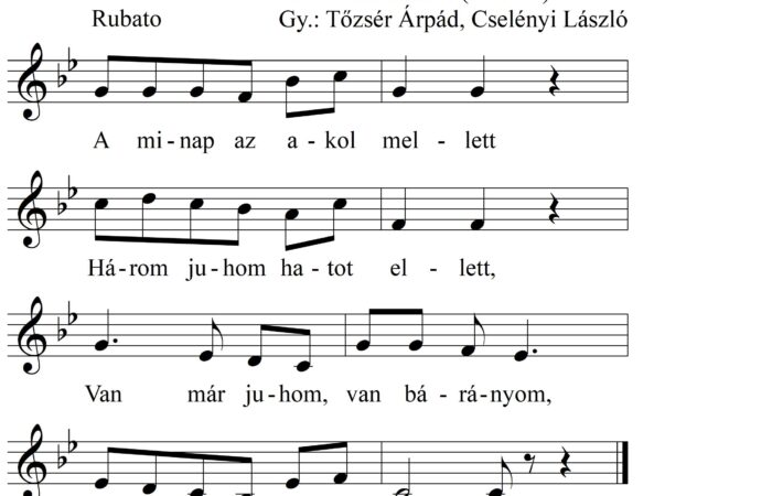 1. A minap az akol mellett Három juhom hatot ellett. Van már juhom, van bárányom, Szeretom is tizenhárom. 2. Megyen...