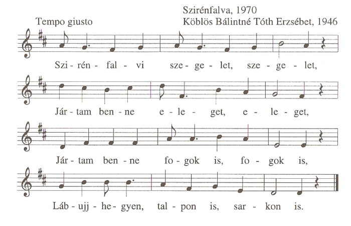 Szirénfalvi szegelet szegelet (ének, alkalomhoz nem kötött dal, Felnőttek népdalai)