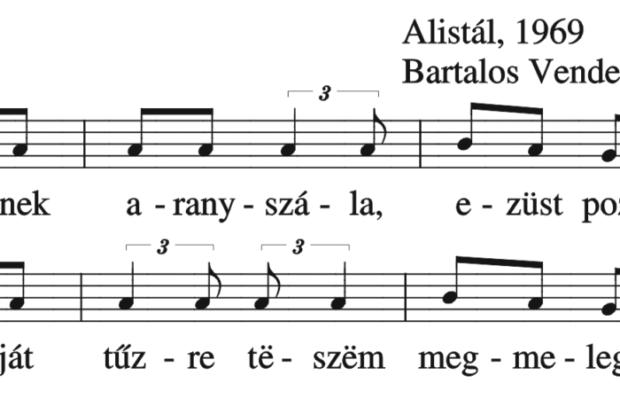 Kenderbuga mag van benne, ha kiüssük nem lesz benne, Kender morzsa, szép menyecske, öleld, csókold, akit szeretsz. Ezt ölelem, ezt...