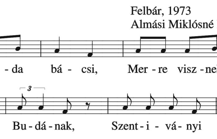 Bújj, bújj, szerda, ződ levelecske, nyitva van az arankapu, átbújhatsz rajta, nyisd ki, rózsám, kapudat, kapudat, hagy kerüljem váradat, váradat,...