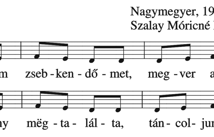 Elvësztettem zsebkendőmet, Megver anyám érte, Egy kisleány mëgtalálta, Táncoljunk hát véle. Szabad péntek, szabad szombat, Szabad szappanozni, Szabad az én...