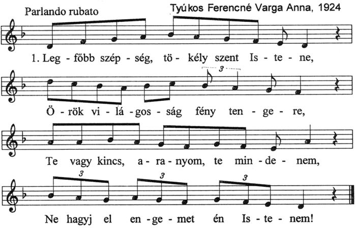 1. Legfőbb szépség, tökély szent Istene,Örök világosság fény tengere,Te vagy kincs, aranyom, te mindenem,Ne hagyj el engemet és Istenem!2. Az...