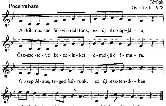 Adj irgalmas Isten boldog új esztendőt, Gazdagnak, szegénynek áldásos jövendőt. Özvegy árvo, megtaláljo, Enyhülését bánatáro. Boldog ój esztendőt.