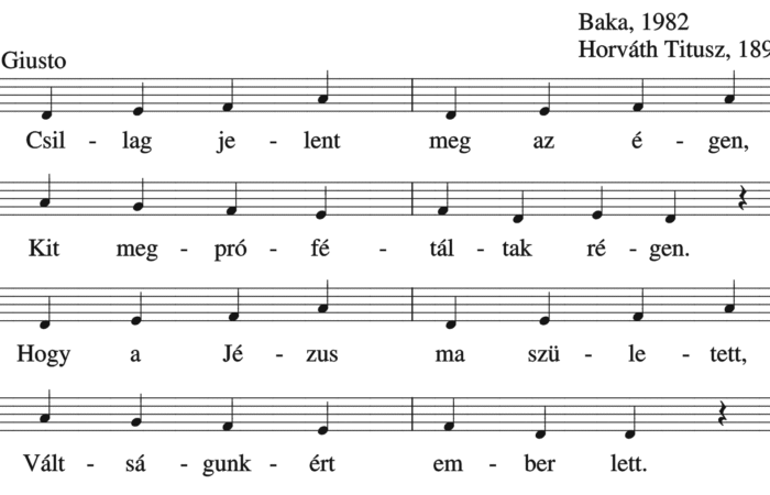 Csillag jelent meg az égen, Kit megpróféltáltak régen. Hogy a Jézus ma született, Váltságunkért ember lett. Dicsértessék a Jézus Krisztus!
