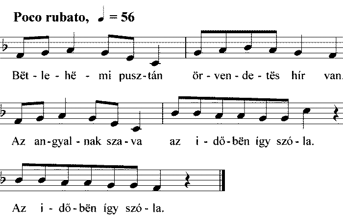 1. Bëtlehëmi pusztán örvendetës hír van. Az angyalnak szava az időbën így szóla. Az időbën így szóla. 2. Pásztorok keljetëk...