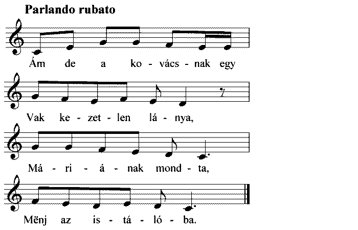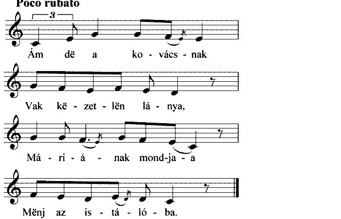 1. Ám dë a kovácsnak Vak këzetlën lánya, Máriának mondja, Mënj az istálóba. 2. A kovács vak lánya, Rólad gondolkodik,...