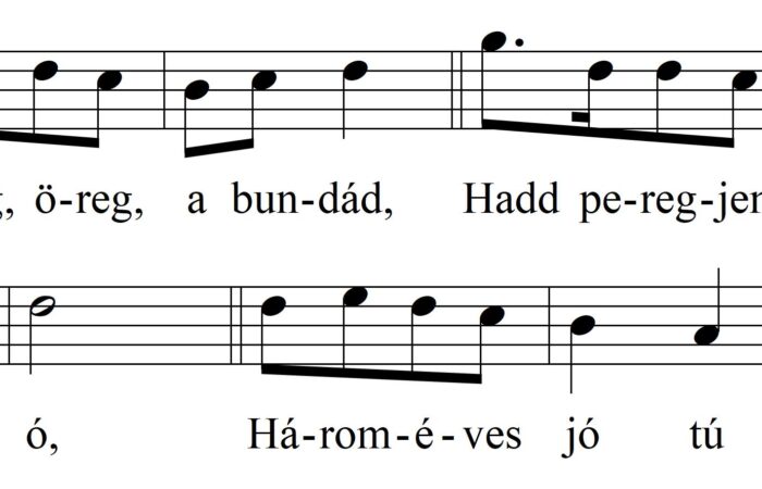 1. Rázd meg, öreg, a bundád, Hadd peregjen a bolhád! Ó, ó, ó, Három éves jó túró. 2. Dalolnak a...