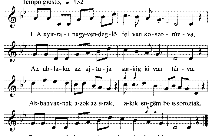 1. A nyitrai nagyvendéglő fel van koszorúzva, Az ablaka, az ajtaja sarkig ki van tárva, Abban vannak azok az urak,...