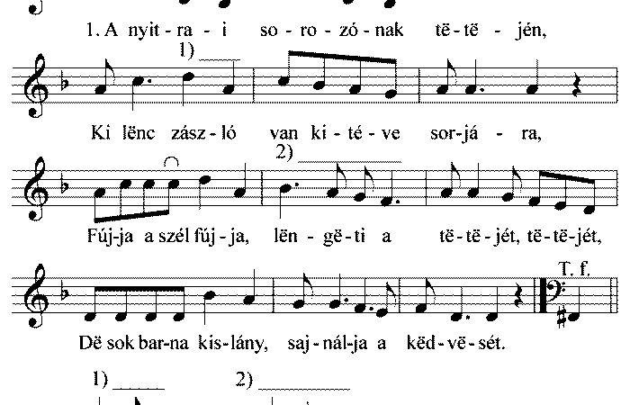 1. A nyitrai sorozónak tetején, Kilenc zászló van kitéve sorjára, Fújja a szél fújja, lengeti a tetejét, tetejét, De sok...