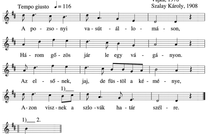 A pozsonyi vasútállomáson, Három gőzös jár le egy vágányon. Az elsőnek, jaj, de füstöl a kéménye, Azon visznek a szlovák...