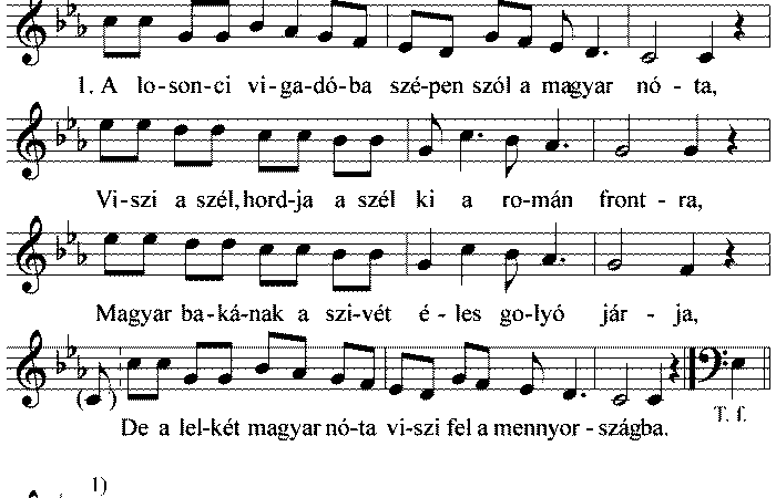 1. A losonci vigadóba szépen szól a magyar nóta, Viszi a szél, hordja a szél, ki a román frontra, Magyar...