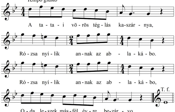 1. A tatai vörös téglás kaszárnya Rózsa nyílik annak az ablakábo. Rózsa nyílik annak az ablakábo, Oda leszek másfál évre...