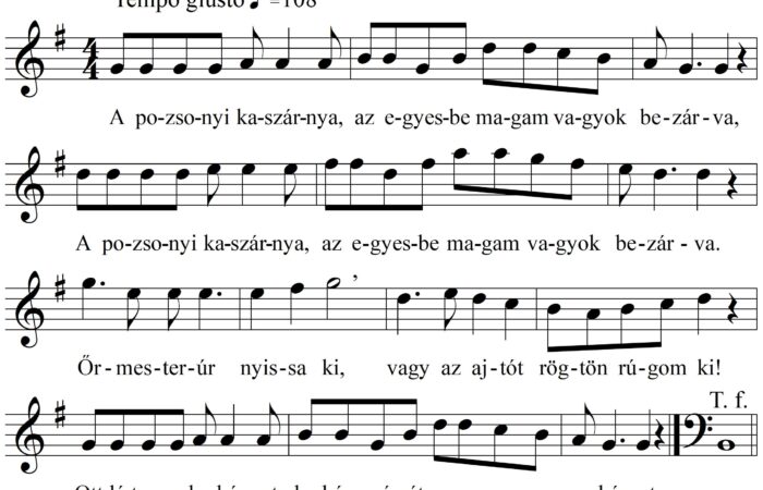 A pozsonyi kaszárnya az egyesbe magam vagyok bezárva (ének, Felnőttek népdalai, katonanóta)