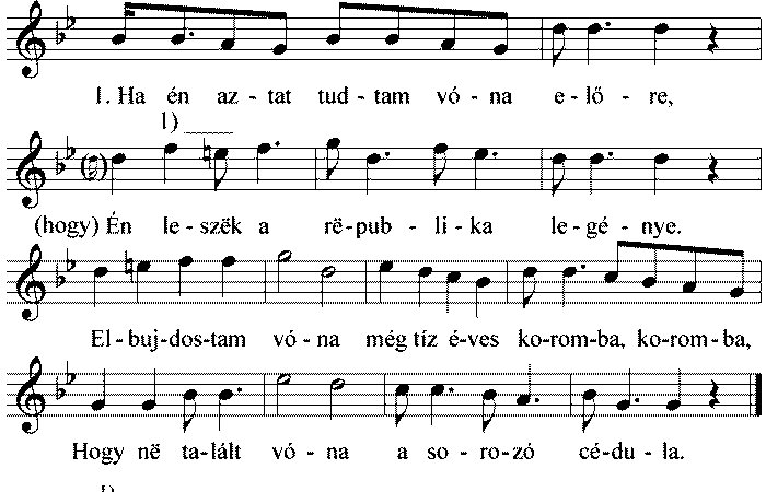 1. Ha én aztat tudtam vóna előre, (hogy) Én leszëk a rëpublika legénye, Elbújdostam vóna még tízéves koromba, koromba, Hogy...