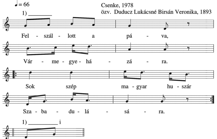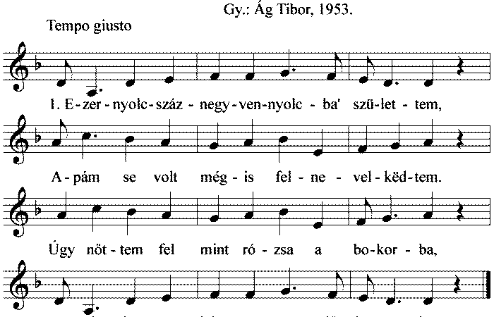 1. Ezernyolcszáznegyvennyolcba születtem, Apám se volt, mégis felnevelkëdtem, Úgy nőttem fel, mint rózsa a bokorba, Huszár lëttem húszesztendős koromba. 2....