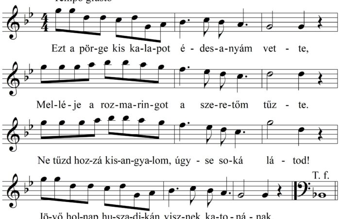 1. Ezt a pörge kis kalapot édesanyám vette, Melléje a rozmaringot a szeretőm tűzte. Ne tűzd hozzá kisangyalom, úgyse soká...