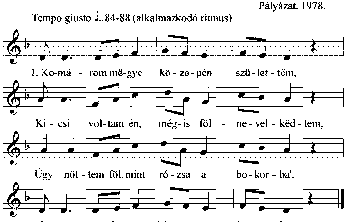 1. Komárom mëgye közepén születtëm, Kicsi voltam én, mégis fölnevelkëdtem, Úgy nőttem föl, mont rózsa a bokorba, Katona lëttem húszéves...