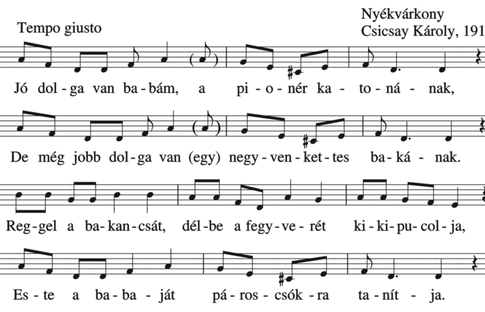Jó dolga van a pozsonyi bakának (ének, Felnőttek népdalai, katonanóta)