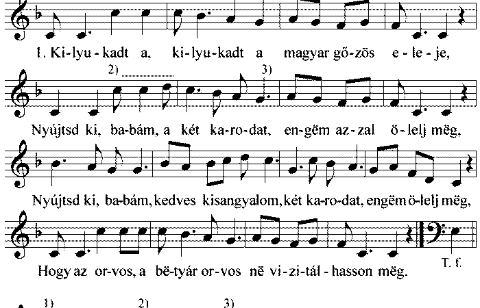 1. Kilyukadt a, kilyukadt a magyar gőzös eleje, Nyújtsd ki babám a két karodat, engëm azzal ölelj meg, Hogy az...