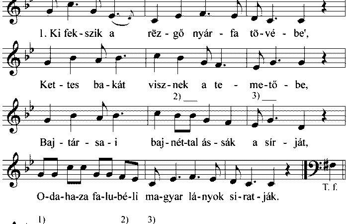 1. Ki fekszik a rëzgő nyárfa tövébe’, Kettes bakát visznek a temetőbe, Bajtársai bajnéttal ássák a sírját, Odahaza falubéli magyar...