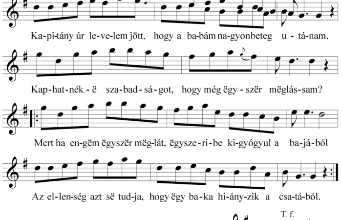 Kapitány úr levelem jött (ének, Felnőttek népdalai, katonanóta)