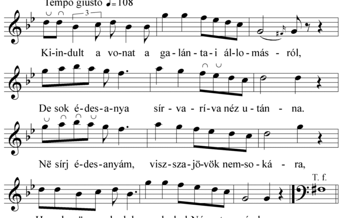 Kiindult a vonat a galántai állomásról, De sok édesanya sírva-ríva néz utána. Në sírj édesanyám, visszajövök nemsokára, Ha csak meg...