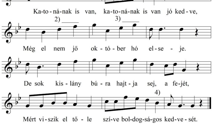 1. Katonának is van, katonának is van jó kedve, Még el nem jő október hó elseje. De sok kislány búra...