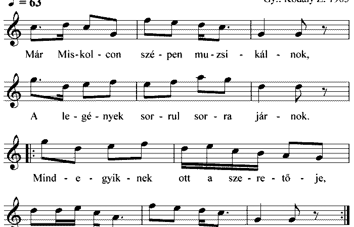 1. Már Miskolcon szépen muzsikálnok, A legények sorrul sorra járnok. Mindegyiknek ott a szeretője, Haj, csak az enyém válik ki...