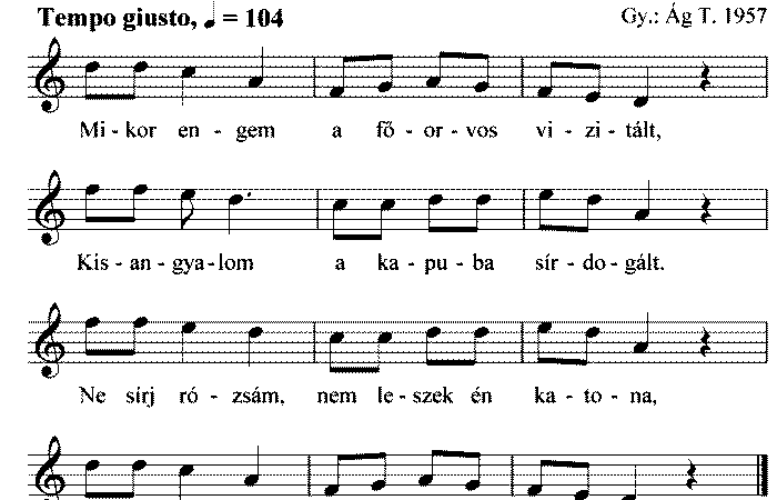 1. Mikor engem a főorvos vizitált, Kisangyalom a kapuba sírdogált. Ne sírj rózsám, nem leszek én katona, Nem leszek én...
