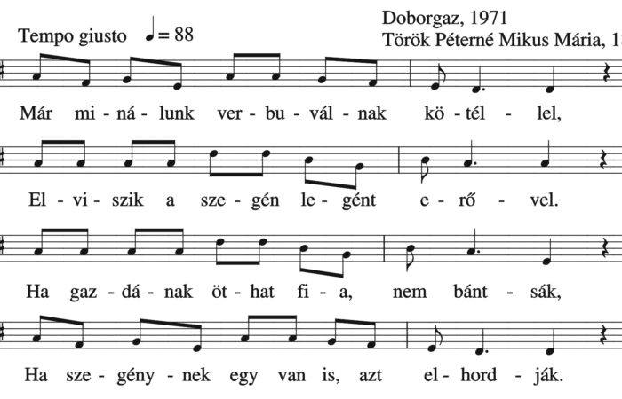 Már minálunk verbuválnak kötéllel, Elvszik a szegénlegént erővel. Ha gazdának öt-hat fia, nem bántsák, Ha szegénynek egy van is, azt...