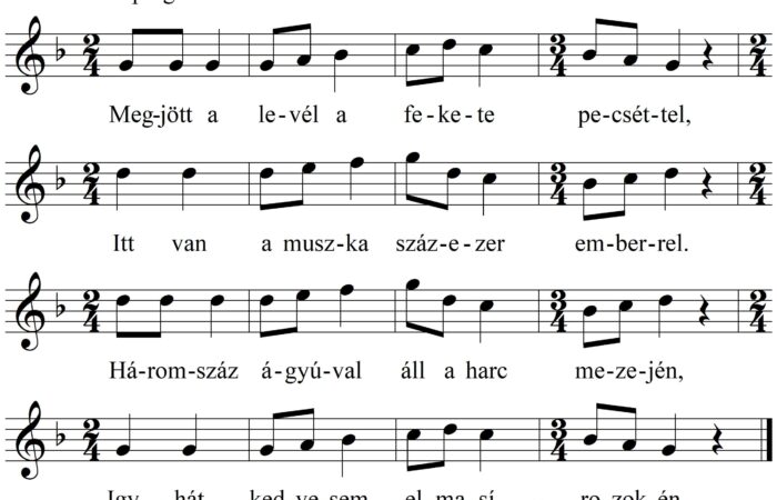 1. Megjött a levél a fekete pecséttel, Itt van a muszka százezer emberrel. Háromszáz ágyúval áll a harc mezején, Így...