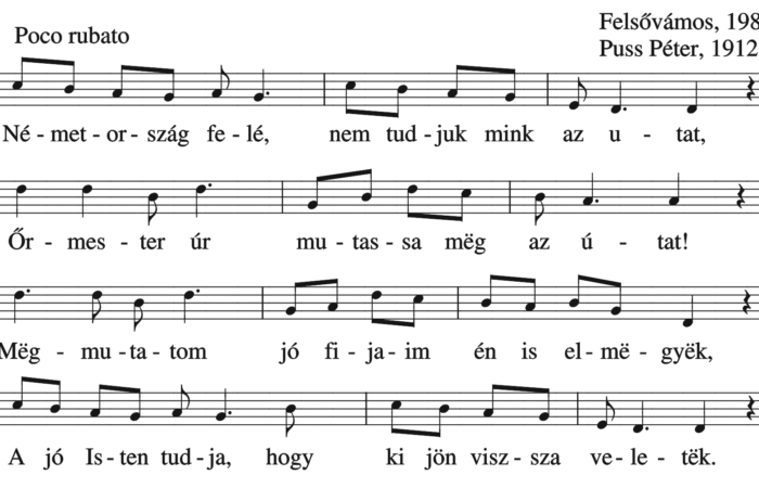 Németország felé nem tudjuk mink az utat, Őrmester úr, mutassa mëg az útat! Mëgmutatom jó fijaim, én is elmëgyëk, A...